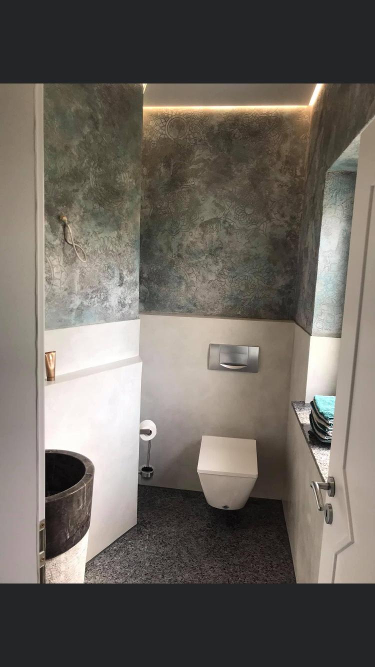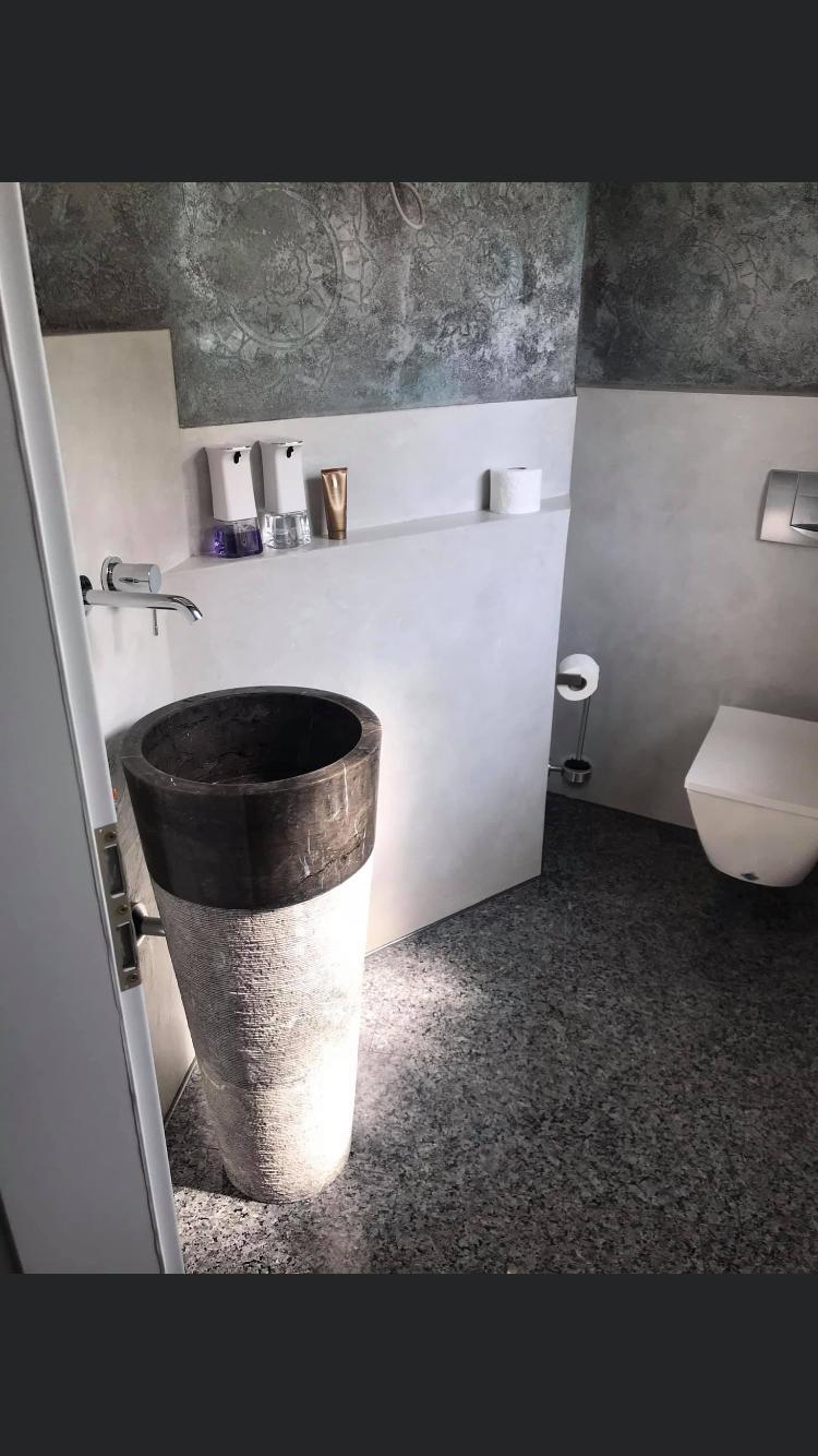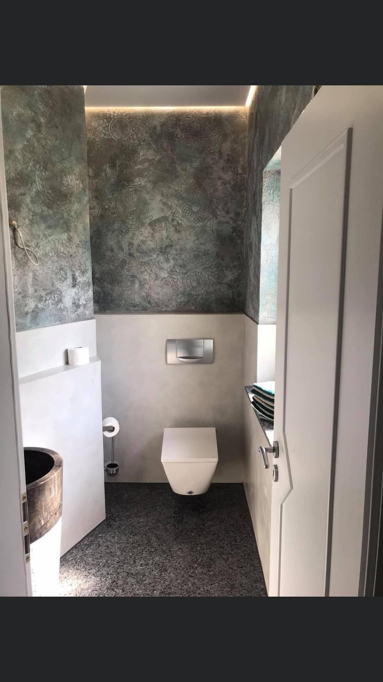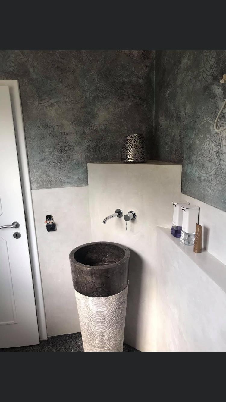 Fugenloses Bad in Valpaint Evolution Liscio, kombiniert mit Mineralspachtel…