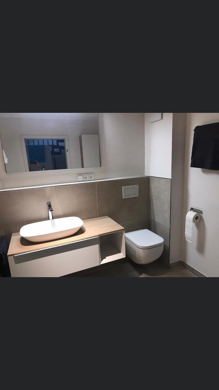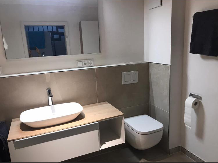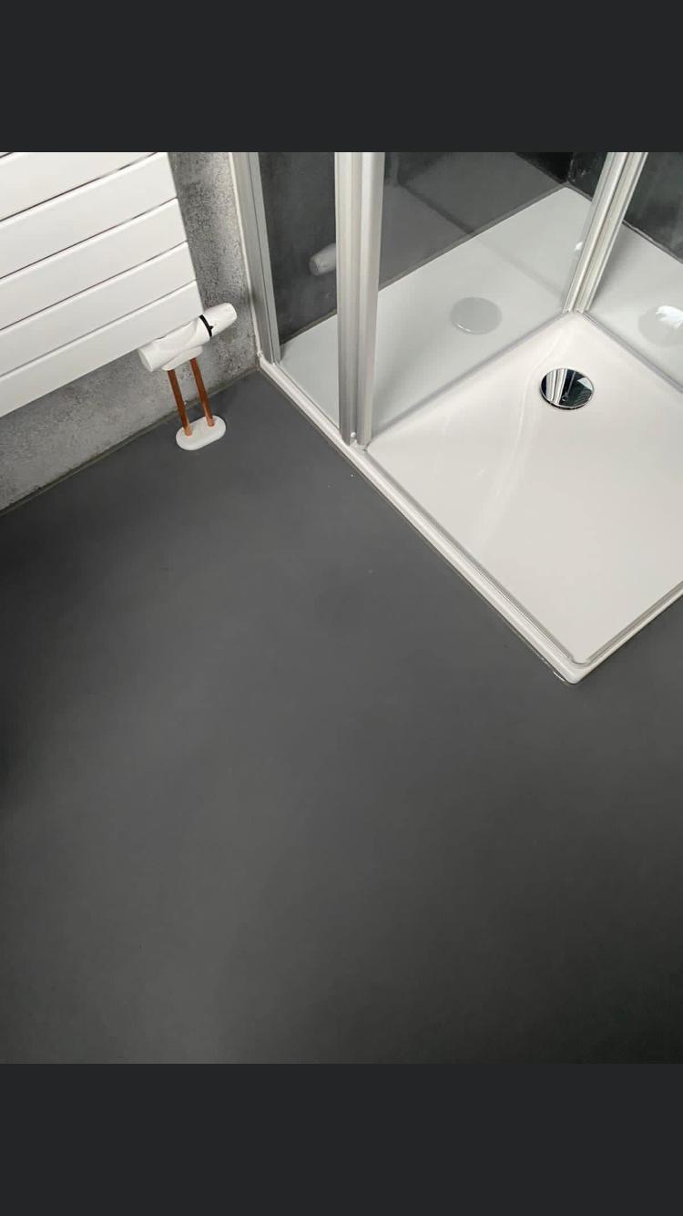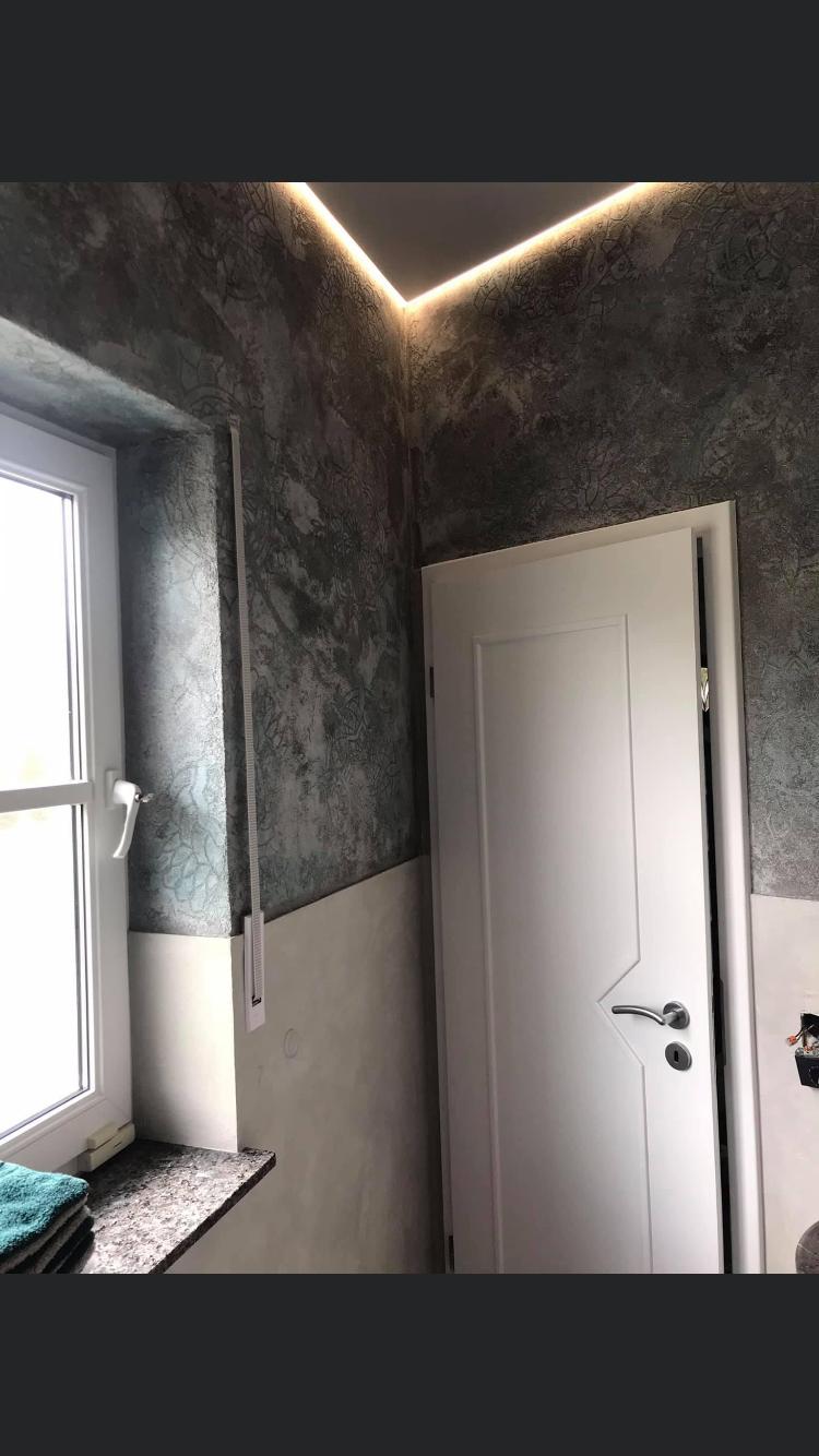 Fugenloses Bad in Valpaint Evolution Liscio, kombiniert mit Mineralspachtel…